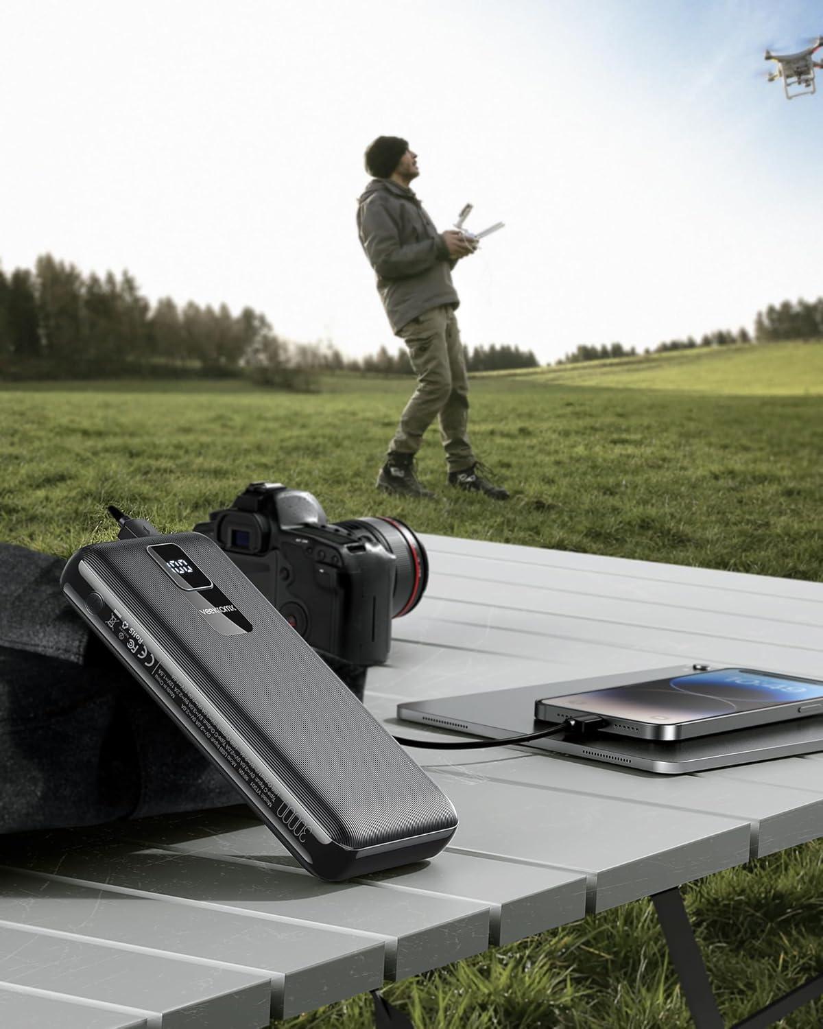20W Type-C output: Equipped with a high-speed Type-C output port, this power bank can charge your laptop at a maximum speed of 20W. It also supports QC